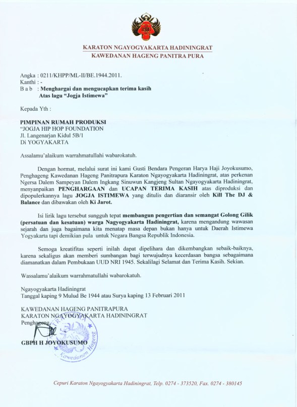 Surat Penghargaan Kraton